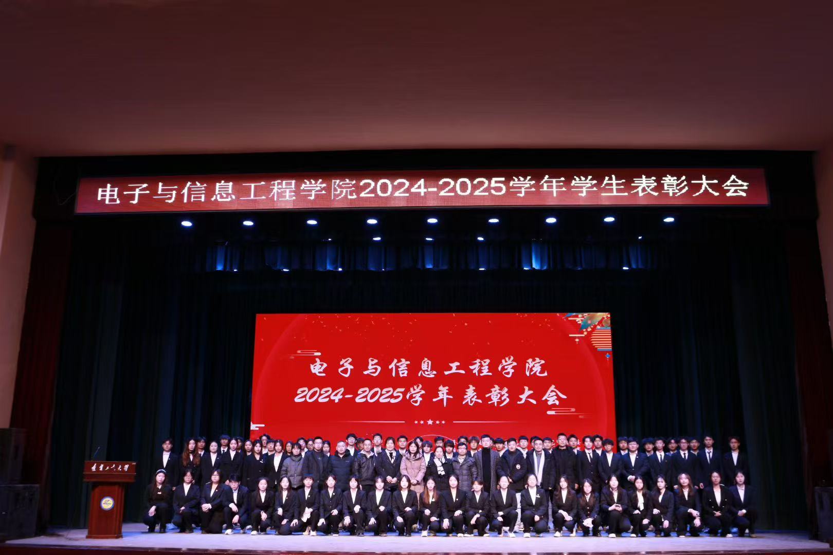 在礼堂举办2024-2025学年表彰大会。院长王亚君、党委书记杜君、副院长于玲、计算机科学与技术系主任李晗、通信工程系主任曹玉东、软件工程系副主任曹光辉、软件工程(中外合作办学)专业负责人俞菲及各年级辅导员出席大会,全体获奖学生及各班级学生代表参会,共同见证荣誉时刻。